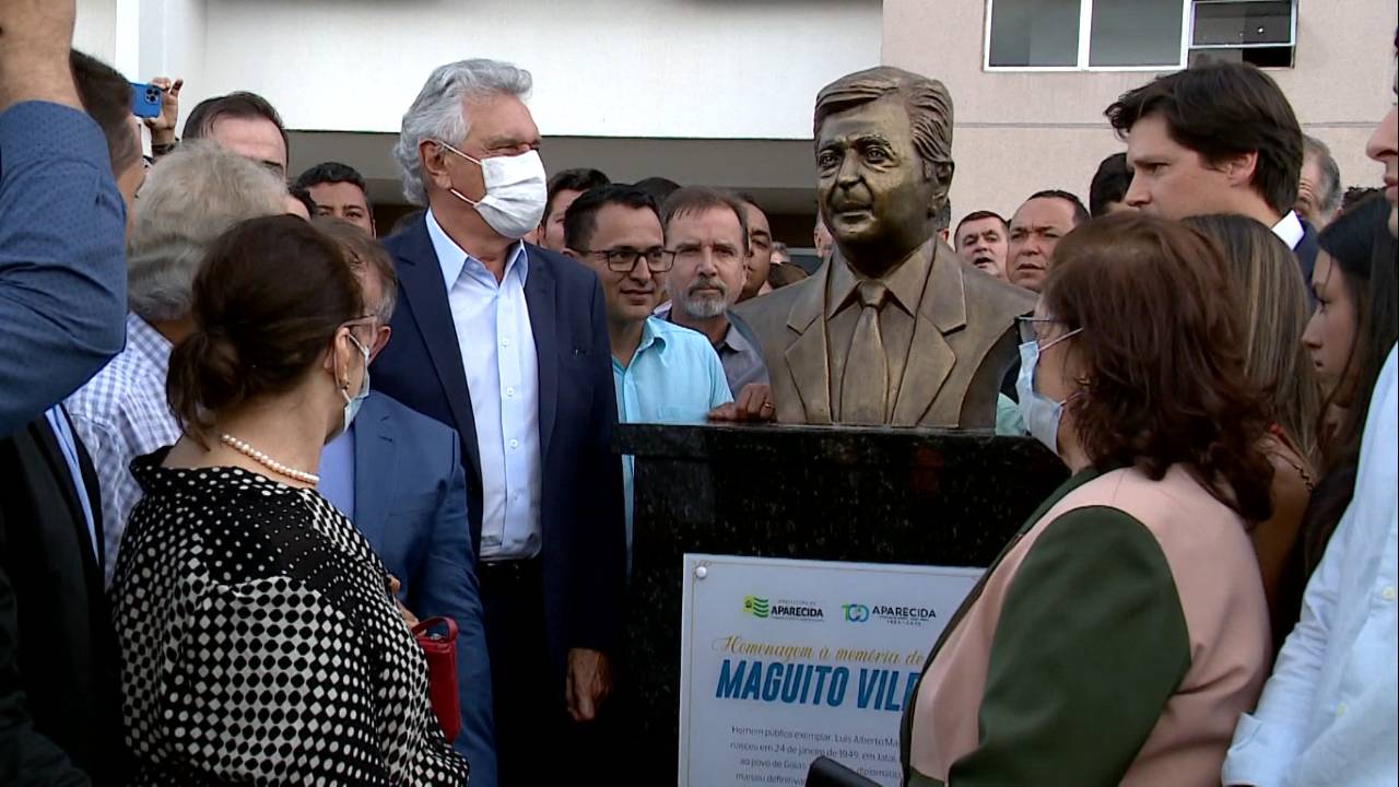 O governador Ronaldo Caiado participou, nesta terça-feira (24), de homenagem ao ex-prefeito e ex-governador Maguito Vilela, que completaria 74 anos. A cerimônia foi realizada na Cidade Administrativa, em Aparecida de Goiânia, município que o político governou por dois mandatos consecutivos (2009 a 2016). O descerramento de um busto em frente ao prédio do Executivo municipal e um vídeo em memória de Maguito, falecido em janeiro de 2021 por complicações da Covid-19, fizeram parte da homenagem. Foi o que mostrou reportagem veiculada no O Mundo em Sua Casa desta quarta-feira (25).