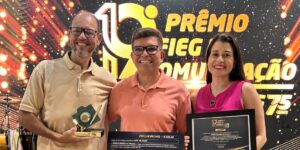 A equipe de radiojornalismo da RBC FM faturou mais um prêmio de comunicação. Desta vez foi na 19ª edição do Prêmio Fieg de Comunicação, da Federação das Indústrias do Estado de Goiás. A equipe formada por Gil Bomfim (repórter), Jeniffer Jacob (produtora) e Fausto Marciano (editor) ganhou em primeiro lugar na categoria Radiojornalismo e Podcast, … Continue lendo Equipe da RBC FM ganha o Prêmio Fieg de Comunicação
