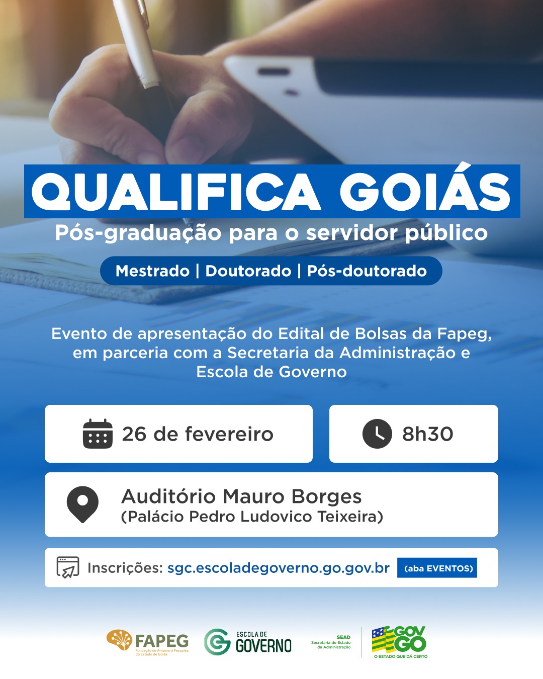 Fapeg e Sead apresentam edital de apoio à pós-graduação de servidores públicos