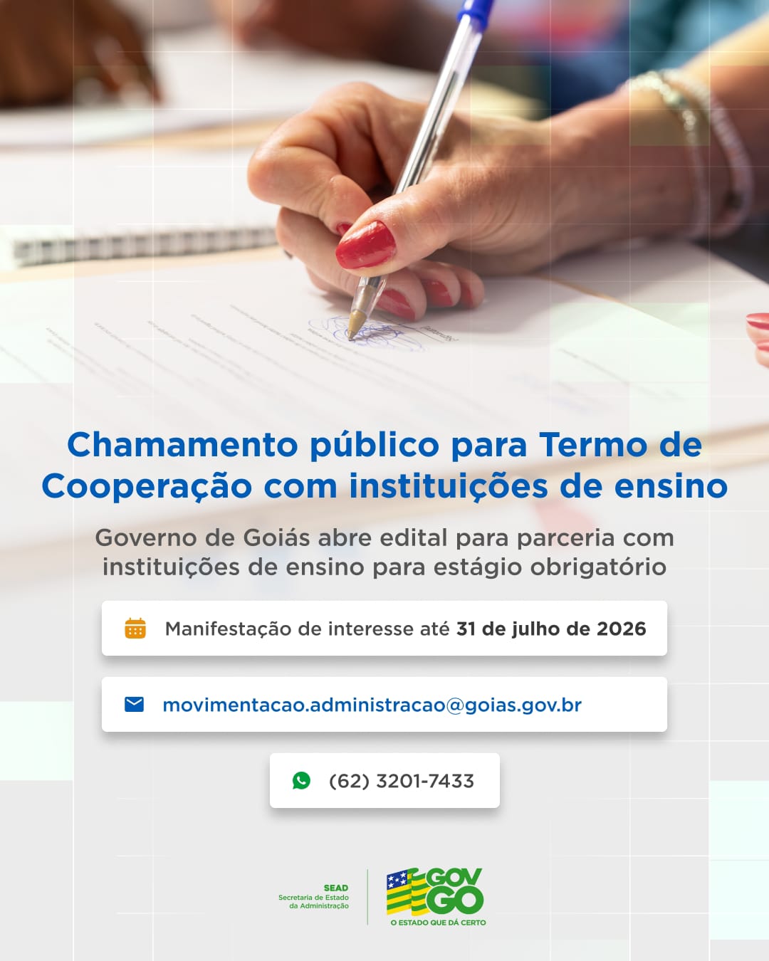 Governo de Goiás abre edital para ampliar oferta de estágios obrigatórios no serviço público estadual