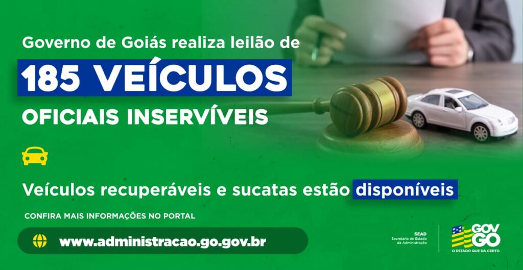O Governo de Goiás, por meio da Secretaria da Administração (Sead), realiza nesta quarta-feira (22/10), um leilão público online para alienação de 185 veículos oficiais inservíveis do patrimônio estadual. Entre os lotes disponíveis, avaliados em conjunto em R$ 749,4 mil, estão automóveis, caminhonetes, ônibus, micro-ônibus, motocicletas e até equipamentos náuticos. O certame será conduzido por leiloeiro oficial credenciado, por meio da plataforma www.serpaleiloes.com.br .