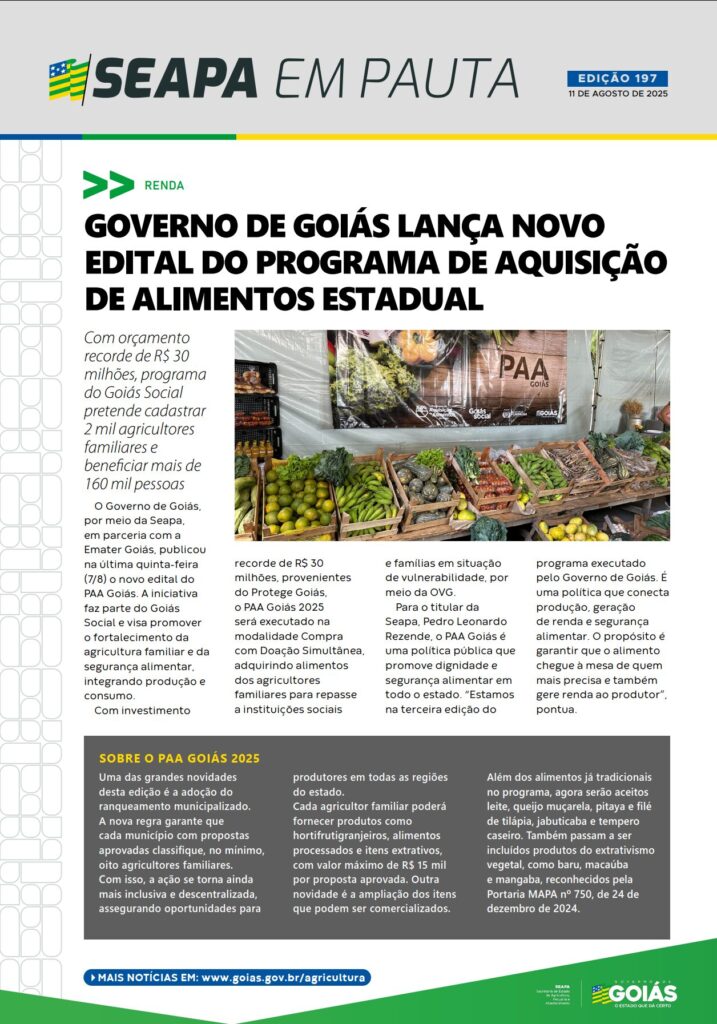 Boletim Seapa em Pauta – 11 de agosto de 2025 Última Atualização em 11 de agosto de 2025 Categoria Seapa em Pauta Clique aqui e leia completoEDIÇÃO 197 – 11 DE AGOSTO DE 2025