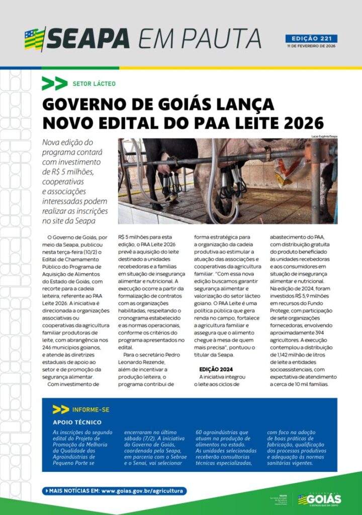 Boletim Seapa em Pauta – 11 de fevereiro de 2026 Última Atualização em 11 de fevereiro de 2026 Categoria Seapa em Pauta Clique aqui e leia completoEDIÇÃO 221 – 11 DE FEVEREIRO DE 2026