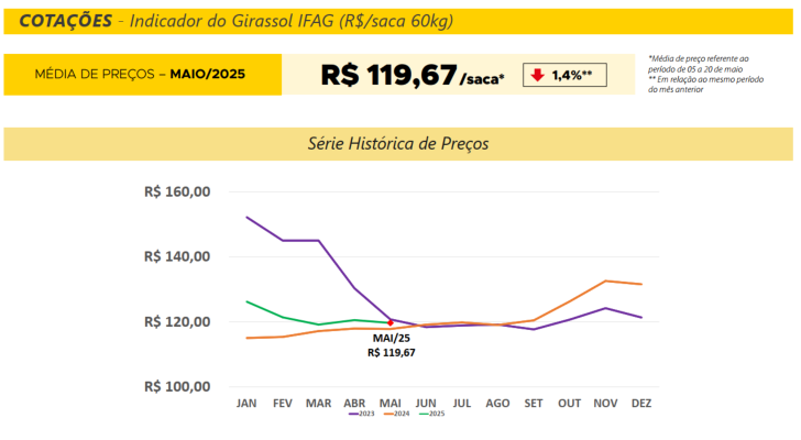 COTAÇÕES – Indicador do Girassol IFAG (R$/saca 60kg)