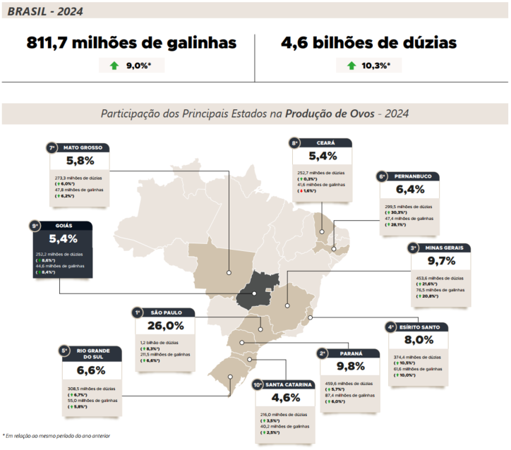 Por outro lado, a avicultura de postura apresentou melhora significativa em fevereiro. Segundo pesquisadores do Cepea, a elevação nos preços dos ovos interrompeu a sequência de perdas no poder de compra do produtor frente aos principais insumos. No estado de São Paulo, com a venda de uma caixa de ovos brancos de 30 dúzias foi possível adquirir 131,22 kg de milho, volume 36,7% superior ao registrado em janeiro. Já a relação com o farelo de soja comercializado no mercado de lotes de Campinas foi de 80,27 kg do derivado por caixa comercializada, aumento de 41,3% na mesma base de comparação. Esses indicadores demonstram a recuperação das margens na avicultura de postura, em contraste com a pressão ainda enfrentada pelo segmento de corte.