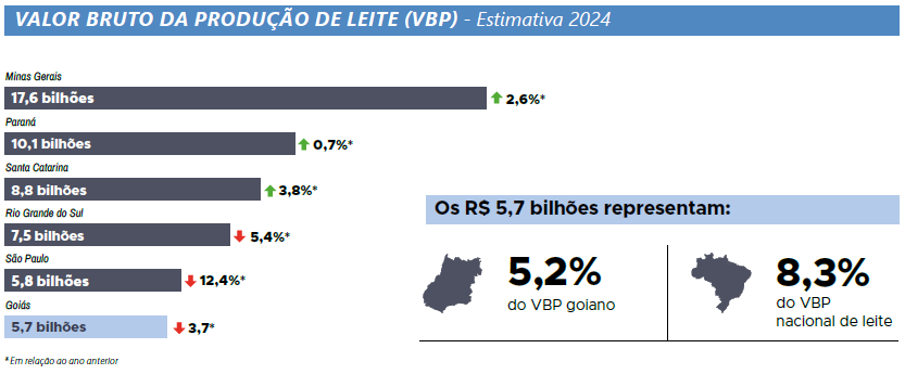 De acordo com a Embrapa, no ano de 2024, o custo de produção do leite teve acréscimo de 2,1%, em relação a 2023. Os principais fatores responsáveis pelo aumento foram as despesas com mão de obra, volumoso, energia e combustível. A partir de janeiro de 2024, houve redução nos custos até o mês de abril. Logo após, iniciou-se o movimento de alta nos custos de produção mês após mês, na qual apenas em dezembro, foi registrada a primeira redução do segundo semestre do ano.