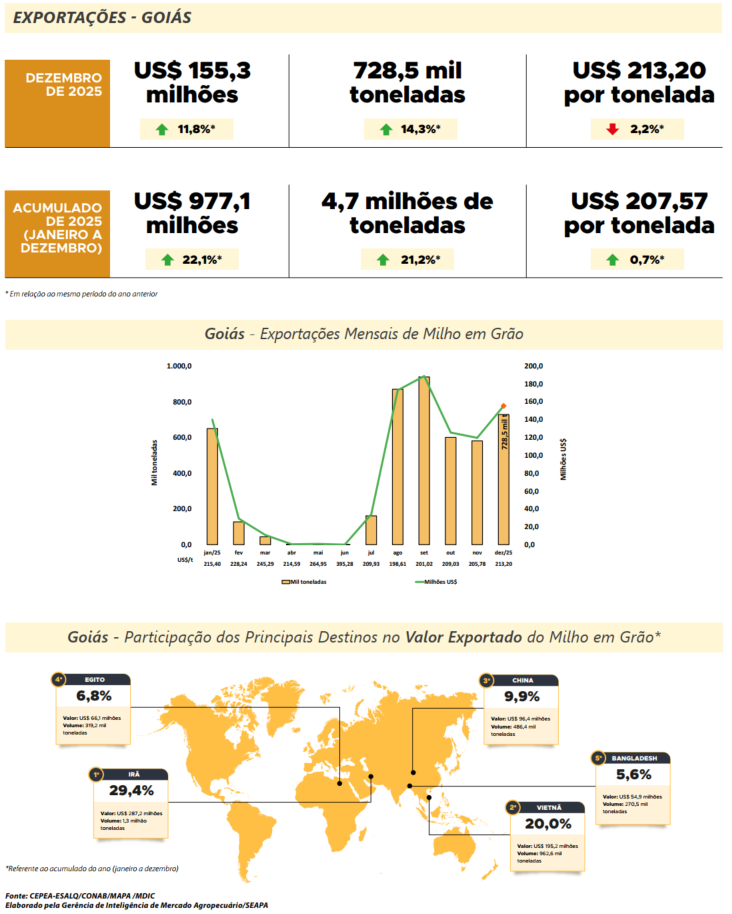 GOIÁS – EXPORTAÇÕES DO MILHO EM GRÃO
