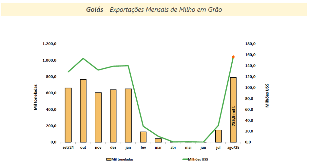 GOIÁS – EXPORTAÇÕES DO MILHO EM GRÃO