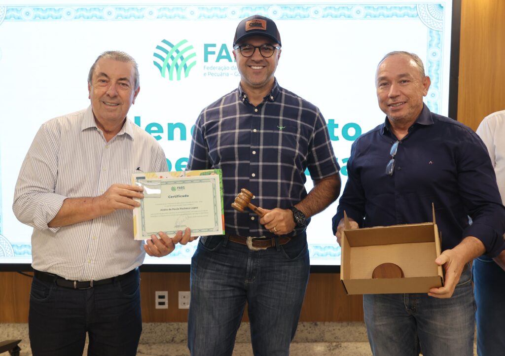 A Agência Goiana de Defesa Agropecuária (Agrodefesa) e a Federação da Agricultura e Pecuária de Goiás (Faeg) firmaram, nesta segunda-feira (24/11), um protocolo de intenções com o objetivo de ampliar a cooperação técnica, operacional e educativa entre as instituições. O documento estabelece diretrizes para fortalecer a defesa agropecuária, aprimorar as cadeias produtivas, promover o desenvolvimento sustentável do setor e assegurar a regularidade dos estabelecimentos leiloeiros no estado. A assinatura ocorreu durante evento de Credenciamento dos Leiloeiros Rurais, realizado na sede do Sistema Faeg, em Goiânia.