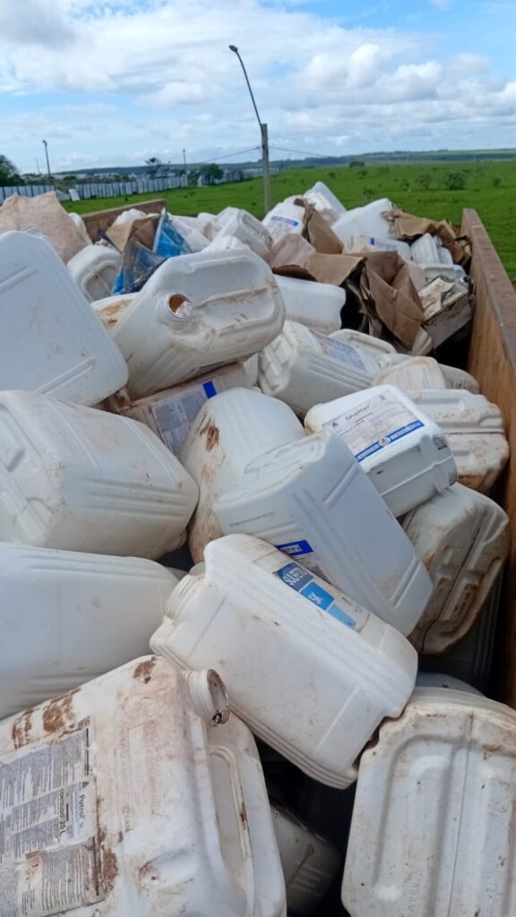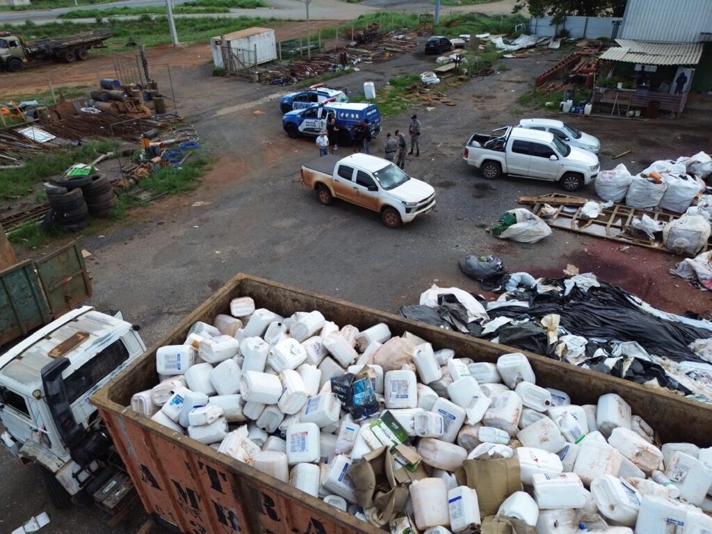 Em ação conjunta, equipes identificaram recipientes vazios em caminhões estacionados em ferro-velho de Cristalina (GO). Material foi encaminhado para posto de recebimento adequado