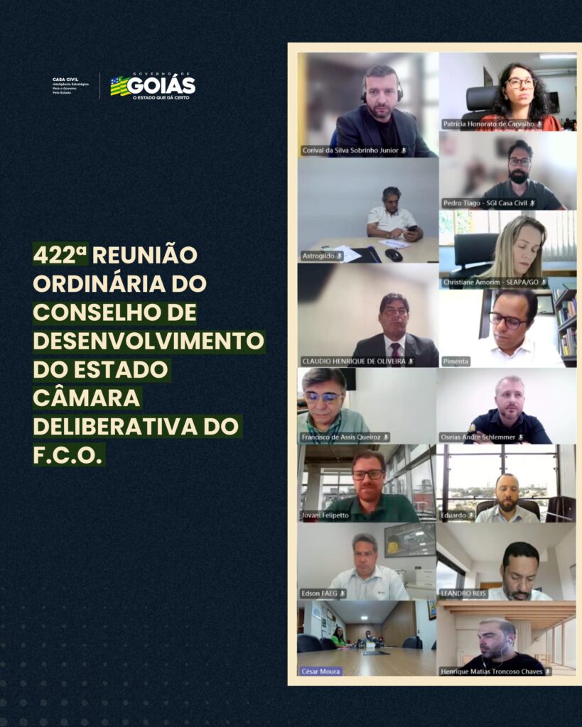 Nesta quinta-feira (29/1) foi realizada, de forma remota, a 422ª Reunião Ordinária do Conselho de Desenvolvimento do Estado de Goiás (CDE/FCO).