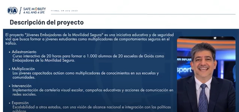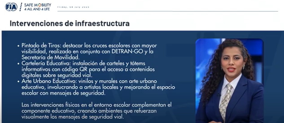 Durante o Painel: Área de Ação: Formação e Educação, Goiás foi destaque com a apresentação do projeto “Jovens Embaixadores da Mobilidade Segura”, explanado pela presidente Nayara Coimbra e pelos representantes da FIA no Brasil, Humberto Kennedy e Kleber Pinto.