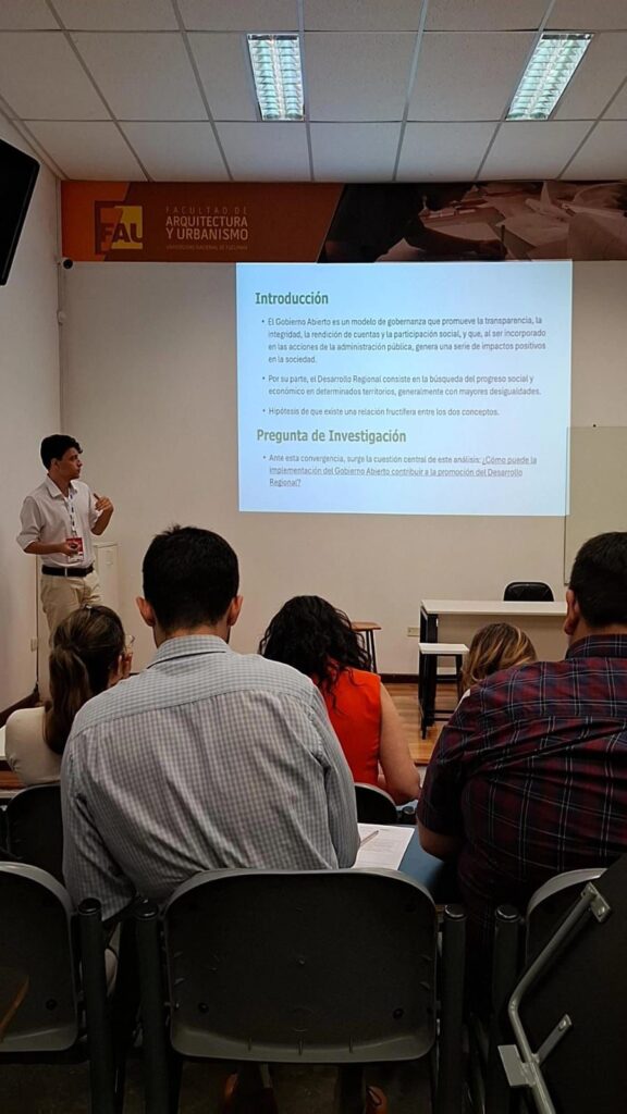 O Governo Aberto foi tema de um artigo acadêmico desenvolvido pelo estagiário da Controlaria-Geral do Estado de Goiás (CGE-GO), Marco Antônio Piza Ferrari e Silva, e apresentado na Argentina, durante a 32ª Jornada de Jóvenes Investigadores. Realizada entre os dias 5 e 7 de novembro, na Universidade Nacional de Tucumán, em San Miguel de Tucumán, a edição 2025 da Jornada abordou o tema “Educação e Ciência Transformam Realidades”.