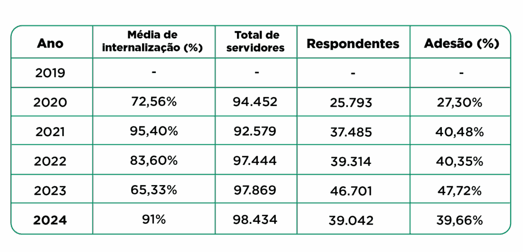 - Transparência: Evolução metodológica contínua, aumento do índice de transparência em todas as páginas de acesso à informação.