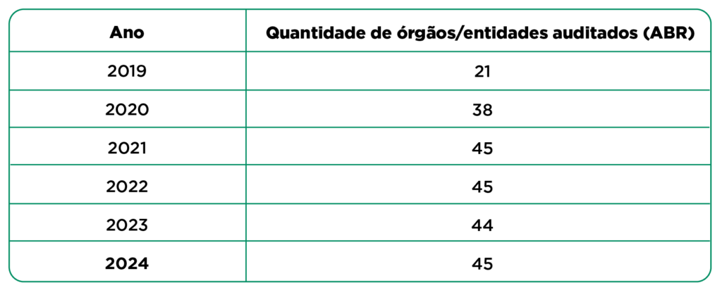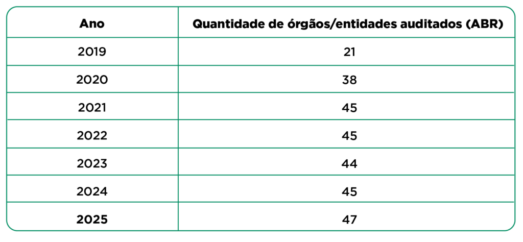 O número de instituições auditadas tem se mantido estável e abrangente.