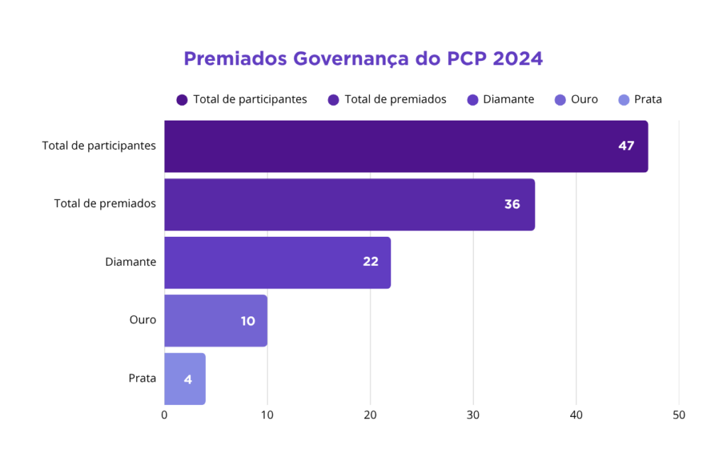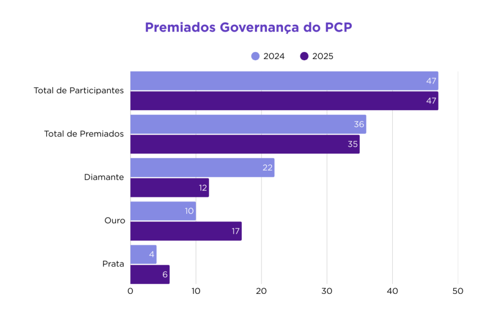 - Governança: Transição do Ranking para Prêmios, criação do Prêmio Governança do PCP, fortalecimento de parcerias e do Planejamento Estratégico Institucional, inovações na apuração e transparência do Prêmio, visitas aos Escritórios de Compliance.