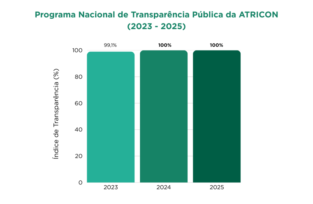 - Transparência: Alinhamento com novos critérios ATRICON, implementação da Autoavaliação, lançamento do Novo Portal da Transparência e atingimento do nível Diamante no PNTP/ATRICON, com 99,1% de atendimento das exigências.