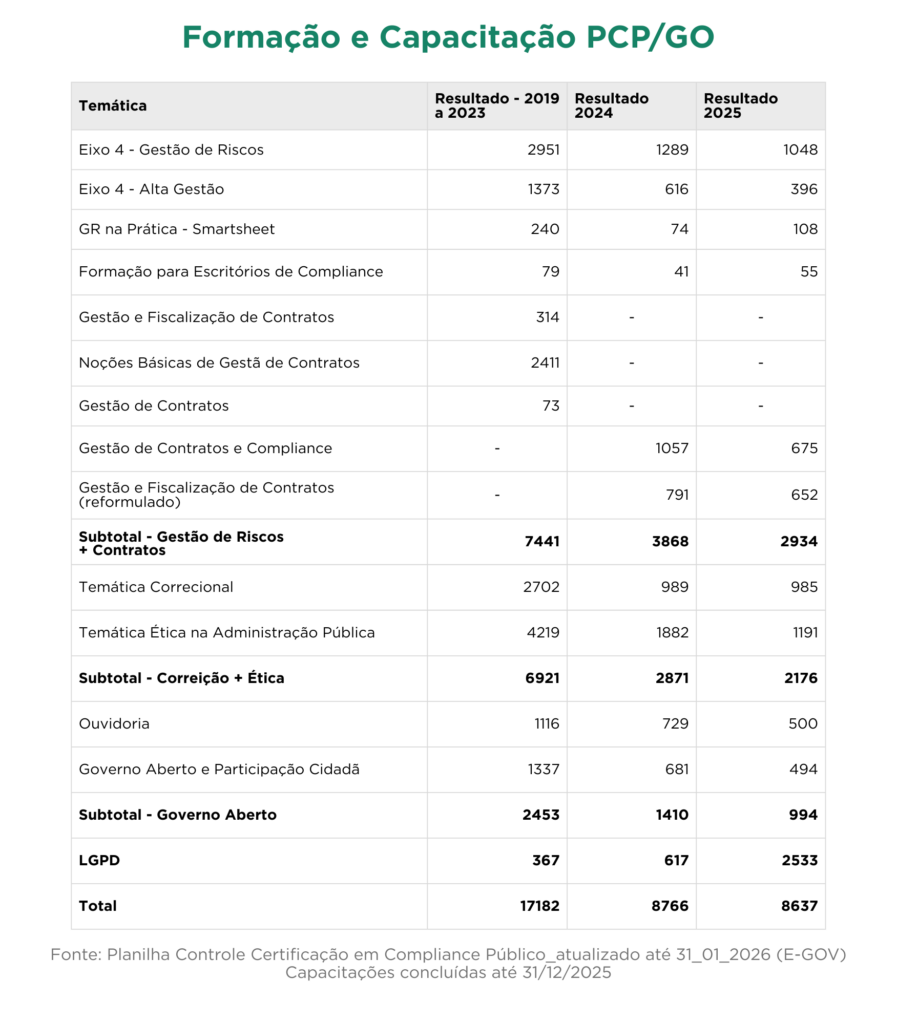 O PCP/GO consolida sua maturidade institucional, com fortalecimento técnico das áreas, integração de instrumentos de governança e aperfeiçoamento contínuo do Programa.