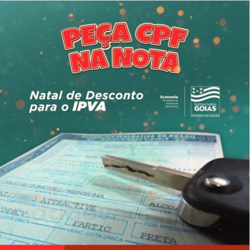 O consumidor pode aproveitar o momento das compras para ganhar desconto de até 10% no Imposto sobre a Propriedade de Veículos Automotores (IPVA) de 2022. Desde 01 de novembro as notas do Programa Nota Fiscal Goiana já valem para o cálculo de desconto no tributo para 2022. Assim, quem pedir CPF na nota ainda terá chance de ter abatimentos que variam de 5% a 10% sobre o imposto.