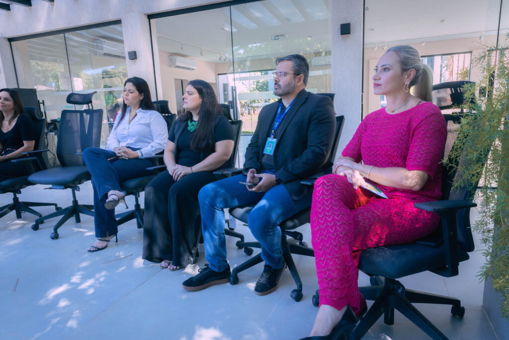 A mesa-redonda foi formada por Sérvulo Nogueira (secretário), Renata Lacerda Noleto (secretária-adjunta), Lilian da Silva Fagundes (subsecretária da Receita Estadual), Kamilla Lemos (gerente de Gestão e Desenvolvimento de Pessoas), João Paulo Marra Dantas (superintendente de Gestão Integrada), Thais Santos (Fieg Jovem) e Marina Coelho Barbosa (GGDP).