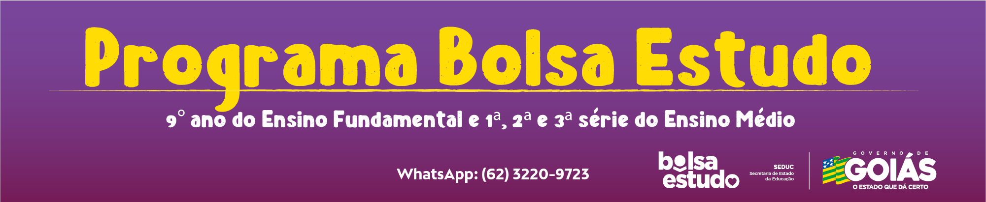 O programa Bolsa Estudo, desenvolvido pelo Governo de Goiás, foi criado pela Lei 21.162 e consiste em uma política pública de caráter educacional e assistencial, que busca incentivar a aprendizagem, combater a evasão escolar e atenuar os efeitos econômicos da pandemia da Covid-19. O Bolsa Estudo também está vinculado ao programa Busca Ativa: Acolher para Permanecer, lançado pela Seduc/GO, em outubro de 2021.