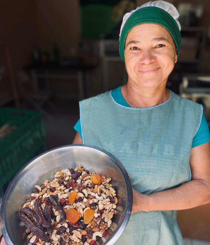 A propriedade, que conta com a mão de obra dos cônjuges e de quatro funcionários, já realiza o plantio de bananas, que são utilizadas para a fabricação de granola, um dos carros-chefes da agroindústria, com produção estimada em 1500 quilos por mês. O local também conta com pequenas plantações de alface, rúcula, couve, manjericão, alecrim e outras ervas necessárias para a produção de queijo de castanha de caju, também um dos produtos mais vendidos pelo casal.