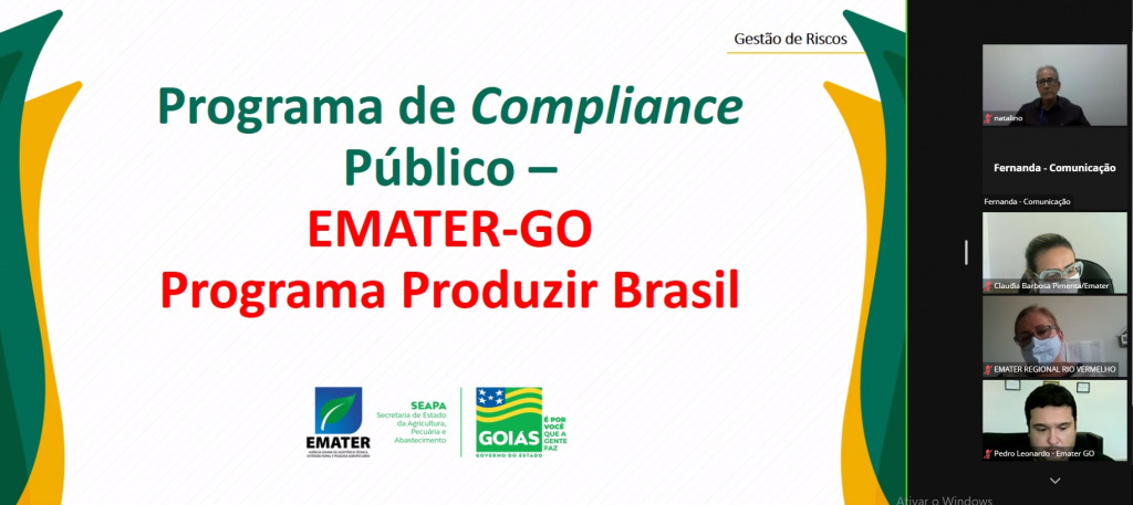 Implantada em cumprimento ao Programa de Compliance Público (PCP), a Gestão de Riscos tem rendido resultados positivos para a Agência Goiana de Assistência Técnica, Extensão Rural e Pesquisa Agropecuária (Emater), que foram apresentados durante reunião virtual nesta quinta-feira (30). No encontro, os gestores responsáveis mostraram as respostas obtidas no segundo quadrimestre deste ano em três âmbitos nos quais a metodologia foi aplicada: Programa Produzir Brasil, folha de pagamento e processos de licitações e contratos.