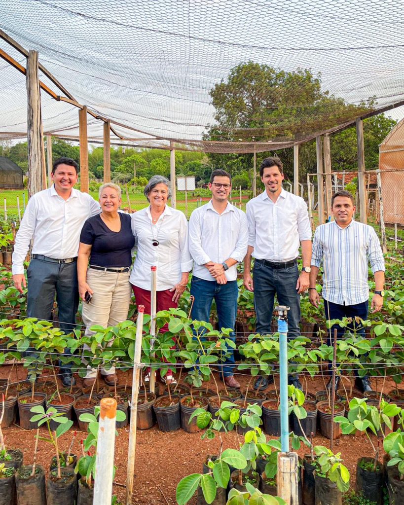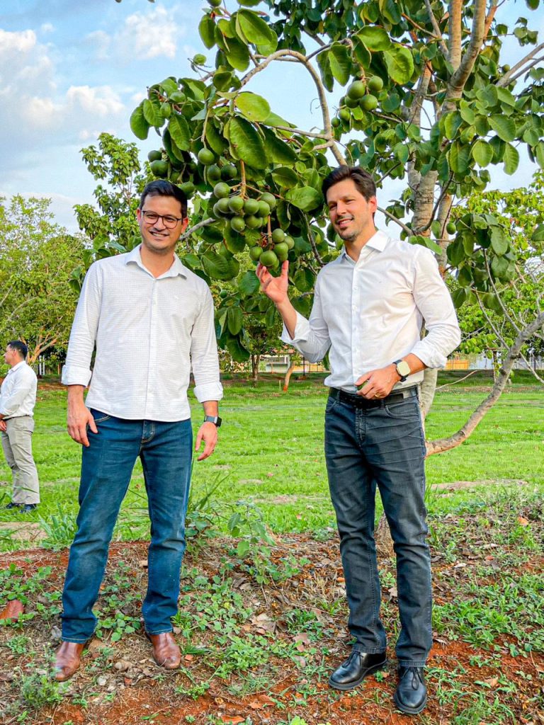 Acompanhado da Diretora de Pesquisa Agropecuária, Maria José Del Peloso, do Diretor de Gestão Integrada, Danilo de Azevedo, e do Chefe de Gabinete, Edilson Alencar, o presidente Rafael Gouveia apresentou ao vice-governador todo o Complexo de Inovação Rural da Emater, passando pelo bosque de plantas Nativas do Cerrado, banco de germoplasma de pequi, o viveiro de mudas, o jardim clonal e o bosque de pequis anão.