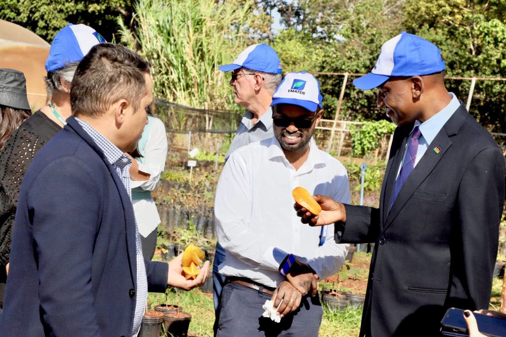 Acompanhado do Diretor de Assistência Técnica e Extensão Rural, Antelmo Teixeira Alves, da Diretora de Pesquisa Agropecuária, Maria José Del Peloso, do Chefe de Gabinete, Edilson Alencar, da Chefe de Comunicação Setorial, Elzenúbia Moreira, o presidente da Emater apresentou todo o Complexo de Inovação Rural da Agência para o embaixador e seu assessor, Robert Lanyasunya.