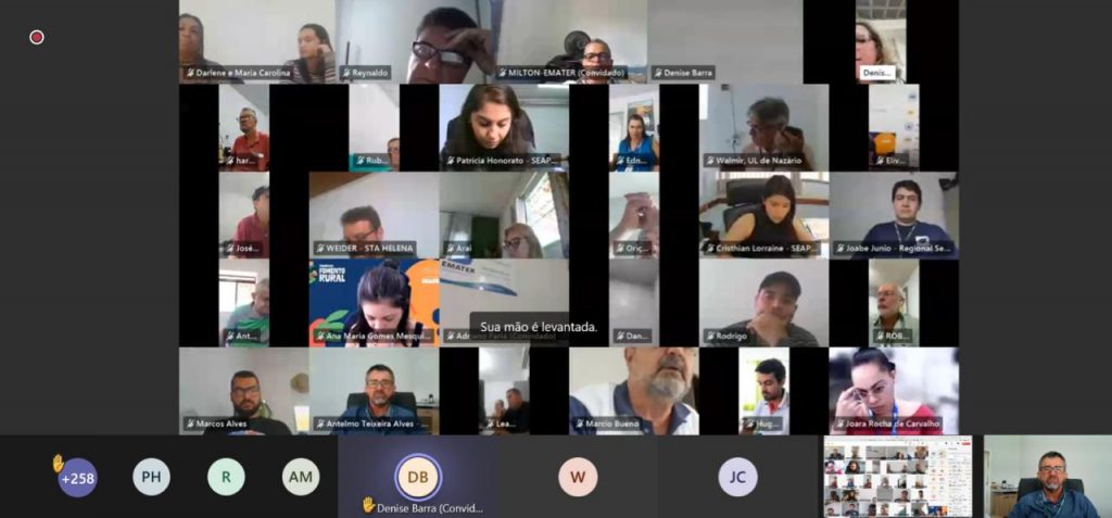 Extensionistas da Agência Goiana de Assistência Técnica, Extensão Rural e Pesquisa Agropecuária (Emater) participam do dia 6 a 8 de fevereiro de uma capacitação on-line para execução do Programa de Fomento às Atividades Produtivas Rurais do Governo Federal (Fomento Rural), em Goiás. O treinamento será ministrado por representantes dos Ministérios do Desenvolvimento e Assistência Social, Família e Combate à Fome (MDS), da Secretaria de Estado de Agricultura, Pecuária e Abastecimento de Goiás (Seapa) e da Emater. Ao todo, cerca de 250 técnicos de todas as regionais da Agência participam da capacitação, além de técnicos da Seapa.