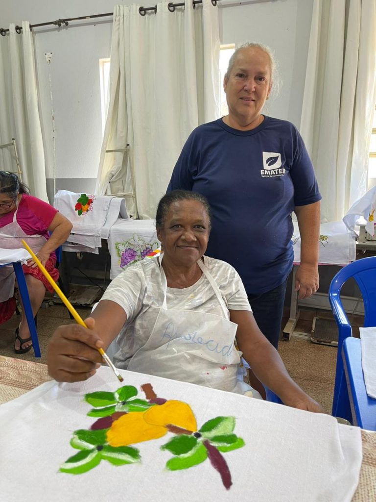 Para a aluna Joana, o resultado de seus trabalhos foram bastante satisfatórios. “Está sendo maravilhoso, estou gostando muito e as minhas pinturas foram as mais bonitas do curso, eu tenho certeza. Eu sou muito grata por essa ação da Emater e prefeitura que está proporcionando a realização desse curso aqui na nossa cidade e com certeza a gente aprendeu muito”, narra.