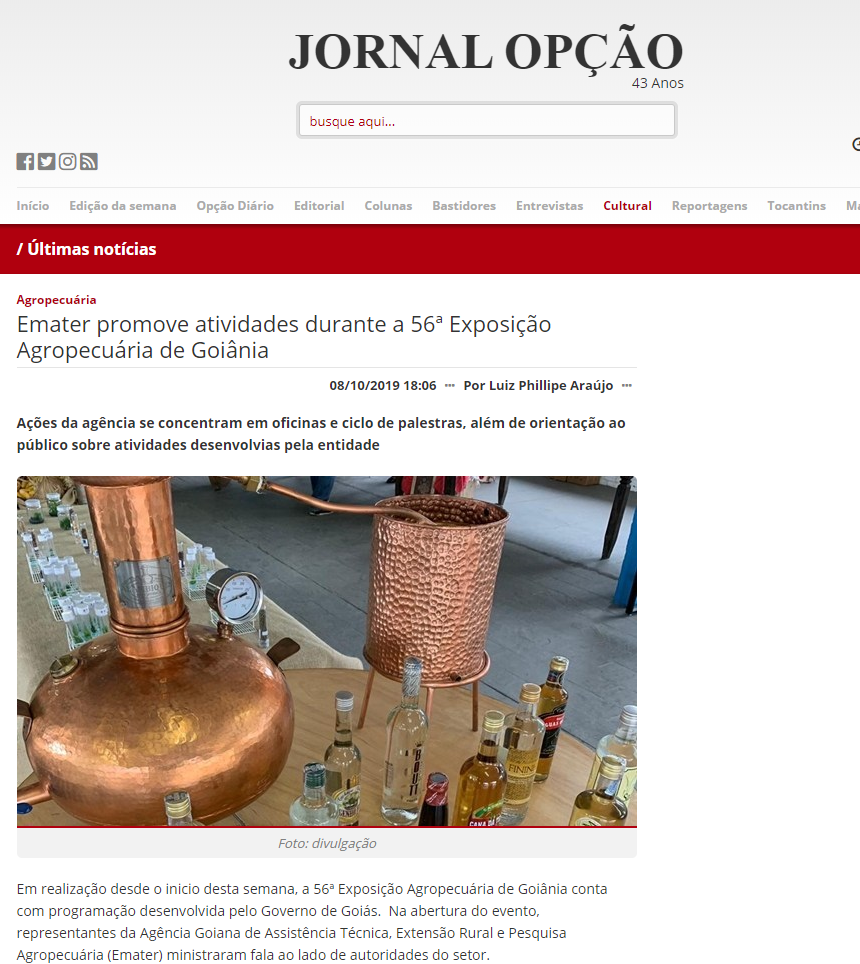 Participação da Emater na Exposição Agropecuária de Goiânia é destaque na imprensa