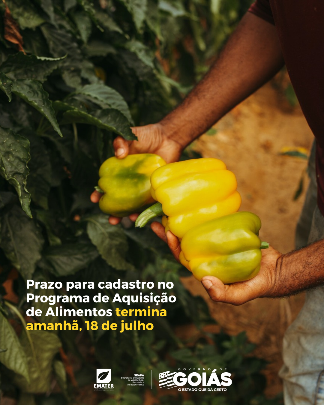 Equipes da Secretaria de Estado de Agricultura, Pecuária e Abastecimento (Seapa) e Emater estão percorrendo municípios goianos, desde o início do período de inscrição, para incentivar agricultores familiares a participar do programa. A força-tarefa promove reuniões em assentamentos, cooperativas e outros espaços comunitários para tirar dúvidas e acelerar cadastros.
