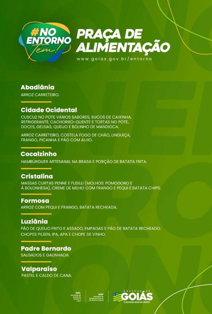 Feira #NoEntornoTem Última Atualização em 16 de outubro de 2025 Categoria Sem categoria Feira #NoEntornoTem leva o melhor de Goiás para Brasília nos dias 18 e 19 de outubro Programação artística Praça de alimentação Confira as atrações gastronômicas e artesanais que te esperam na Feira #NoEntornoTem 3ª edição da feira #NoEntornoTem será no estacionamento do Complexo Cultural da Torre de TV