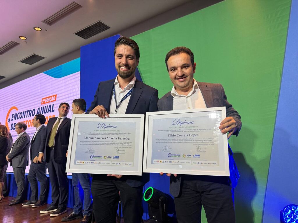 No mesmo evento, o prefeito de Valparaíso de Goiás, Marcus Vinícius, também foi homenageado com o Prêmio Índice de Gestão pelo Futuro das Cidades 2025, reconhecimento concedido às administrações que se destacam pela qualidade da gestão pública.