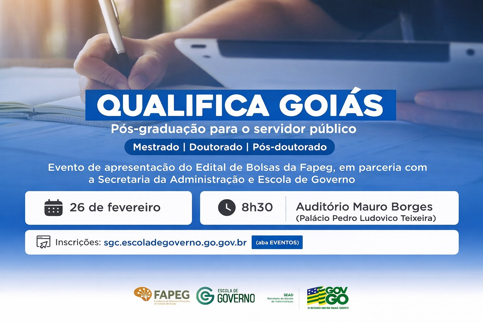 Home Formação, capacitação e valorização do servidor público estadual Cursos de Curta Duração Eventos de capacitação presenciais com duração estimada entre 4h e 76h. Conheça sobre os cursos de Curta Duração Graduação Curso de Ensino Superior, em parceria com a UEG, voltado à evolução da Gestão Pública Conheça o curso de Graduação Pós-Graduações Cursos preparatórios para exames de proficiência, com foco em pós-graduações como mestrados e doutorados. Conheça os cursos para Pós-Graduação