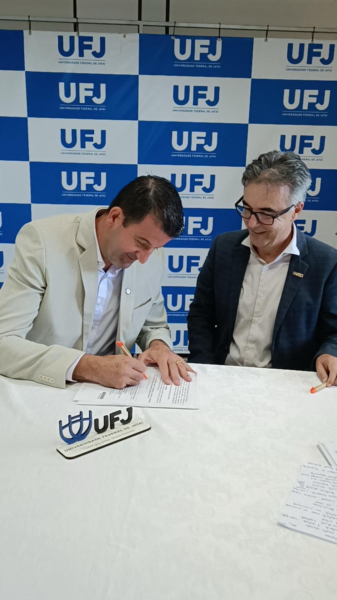 Durante a visita, a diretoria da Fapeg percorreu laboratórios da UFJ, participou da aula inaugural da pós-graduação e realizou a assinatura simbólica do termo de outorga de um dos 22 projetos da universidade contemplados no Programa de Auxílio à Pesquisa Científica e Tecnológica – edição 2024. Juntas, as propostas representam mais de R$ 650 mil em investimentos da Fapeg na instituição.