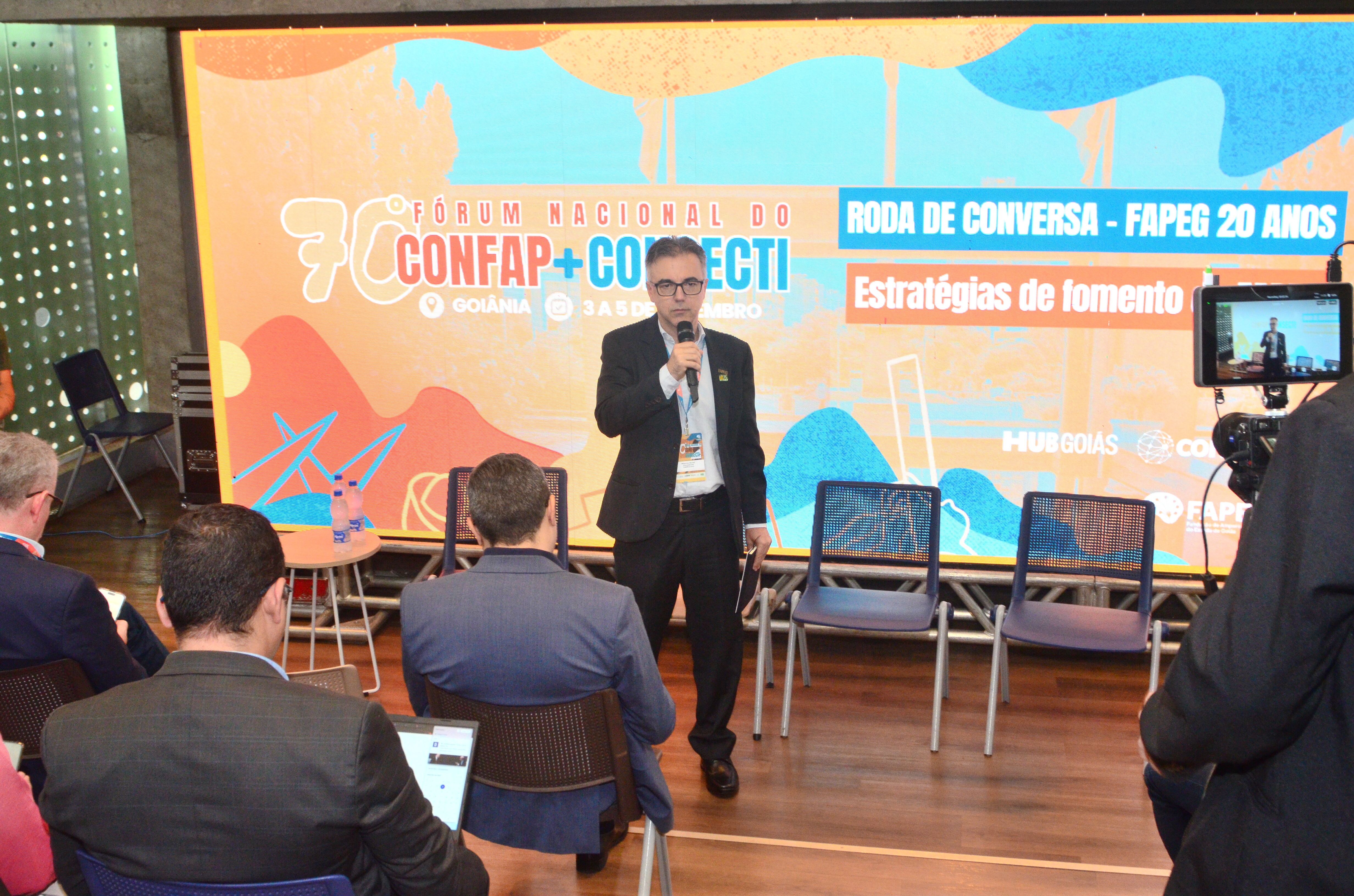 O 70º Fórum Confap + Consecti começou nesta quarta-feira (3/12), em Goiânia, com uma imersão sobre as estratégias de fomento da Fundação de Amparo à Pesquisa do Estado de Goiás (Fapeg). A atividade, realizada no auditório do Hub Goiás, abriu oficialmente o encontro que reúne, durante três dias, dirigentes de ciência, tecnologia e inovação das 27 Fundações Estaduais de Amparo à Pesquisa, representantes de agências nacionais e pesquisadores de diversas áreas.