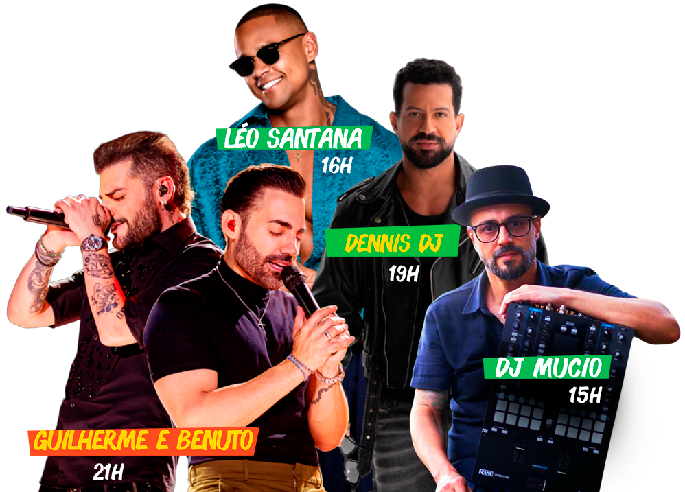 Na avenida, a música toma conta com atrações nacionais e regionais, misturando axé, pagode, rock e sertanejo, em um trio elétrico de grande porte, do tipo que a gente vê nos grandes carnavais da Bahia, com som potente pra ninguém ficar parado.