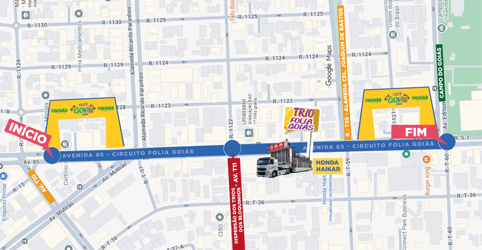 A folia começa no pré-carnaval de Goiânia, no sábado que antecede o carnaval. Durante o dia, os foliões se concentram nos blocos espalhados pela cidade e, no fim da tarde, seguem juntos atrás dos trios até a Avenida 85, onde acontece o Circuito Folia Goiás.