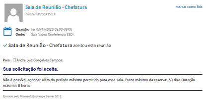 Após o envio, será encaminhado para a sua caixa de e-mail uma resposta automática da confirmação da sua reunião/evento (não precisa responder)