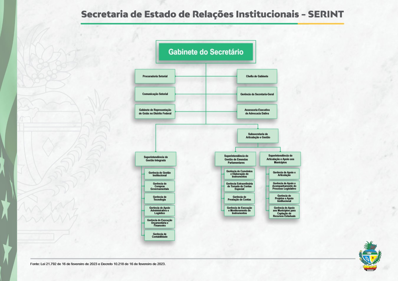 - Altera o Decreto nº 10.218, de 16 de fevereiro de 2023, que regulamenta a Lei nº 21.792, de 16 de fevereiro de 2023, que estabelece a organização administrativa básica do Poder Executivo e dá outras providências.
