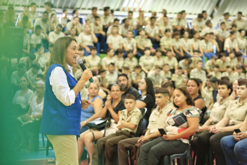 A coordenadora do Goiás Social, primeira-dama Gracinha Caiado, entregou, nesta quarta-feira (26/3), 254 óculos de grau para estudantes do Colégio Estadual da Polícia Militar (CEPMG) Ayrton Senna, no Jardim Curitiba, em Goiânia. Ela destacou o alcance do programa Olhar Para Todos, que oferece, além dos óculos, exames oftalmológicos. “Esse é o maior programa oftalmológico do Brasil. Não fazemos apenas o exame. Quem precisa de cirurgia também é atendido”, relatou ela. “Fazemos isso para mostrar que não existe governo se não for para cuidar das pessoas”, completou.