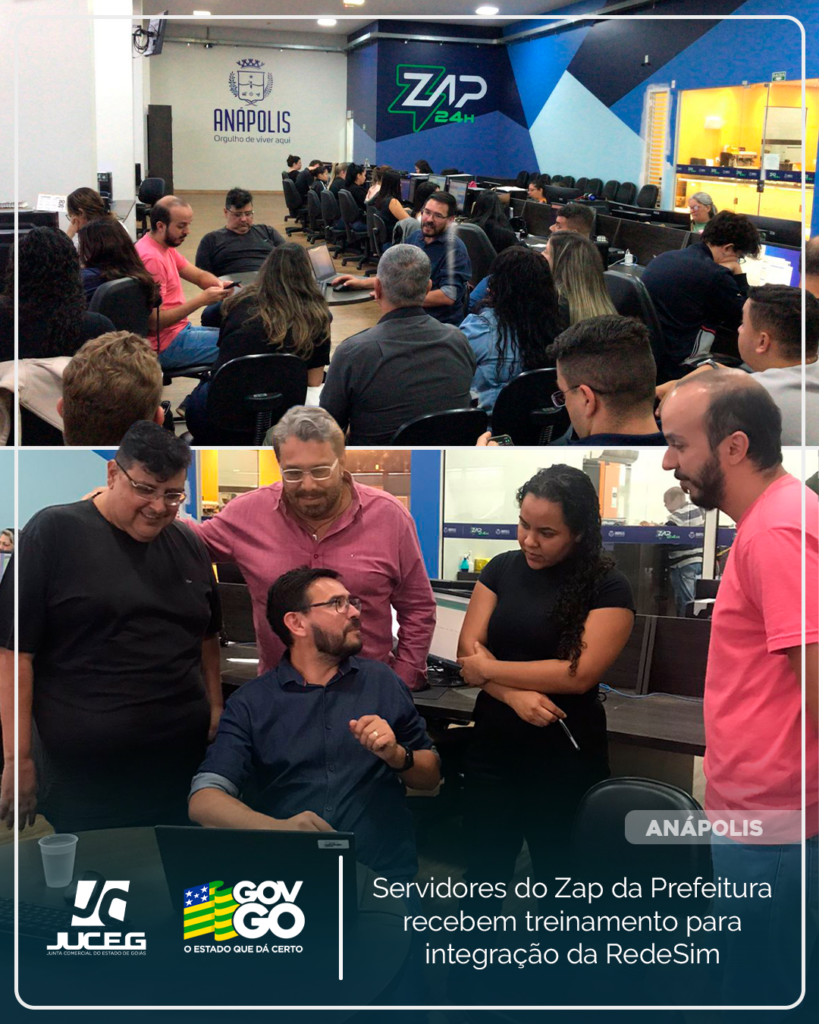 Servidores da Prefeitura de Anápolis que atuam no cadastro econômico e os que realizam atendimento à população via Zap 24h, um serviço que oferta mais de 400 assuntos de diversas áreas da administração pública, como saúde, zeladoria urbana, tributos, cadastro econômico e social, entre outros; receberam, nesta quarta-feira (21), treinamento da equipe da RedeSim.
