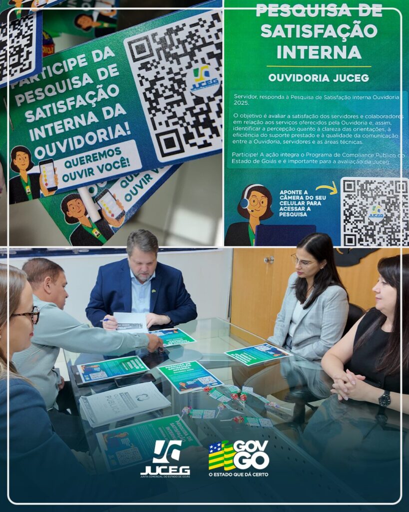Uma reunião entre a diretoria e a ouvidoria da Junta Comercial do Estado de Goiás (Juceg) lançou, nesta quarta-feira (06), a pesquisa de satisfação interna, que pretende identificar a percepção quanto à clareza das orientações, à eficiência do suporte prestado e à qualidade da comunicação entre a Ouvidoria, servidores e as áreas técnicas. O levantamento junto aos servidores será realizado entre os dias 11 e 29 de agosto.
