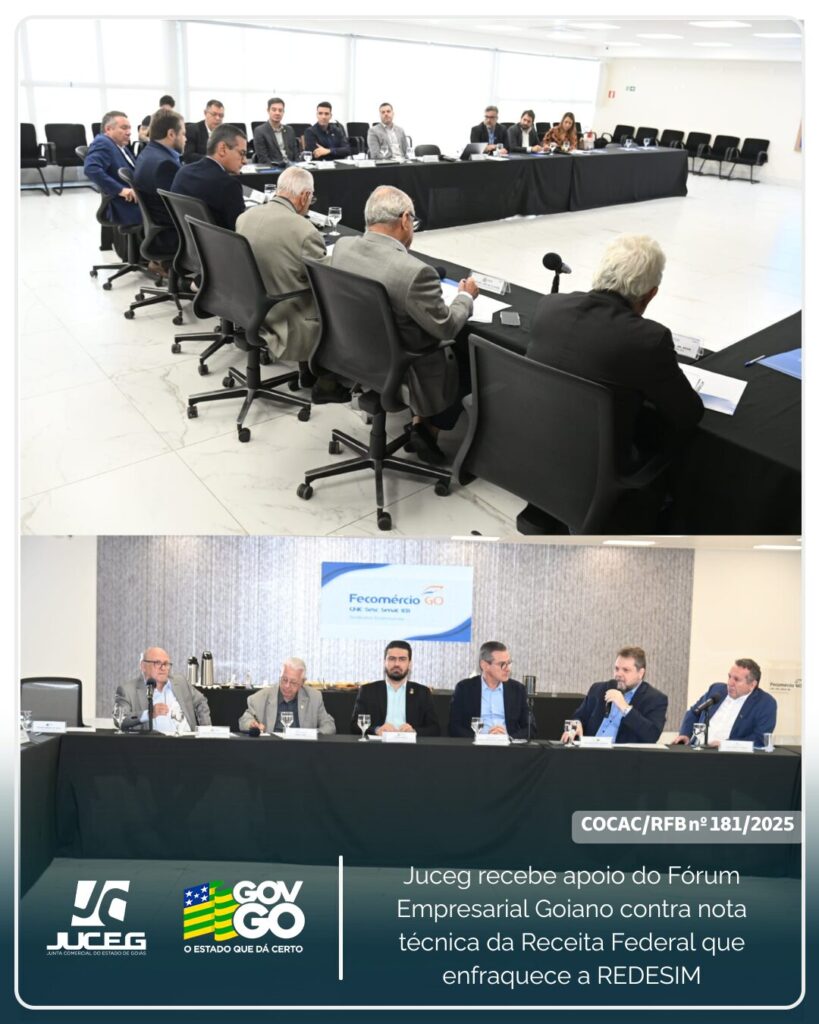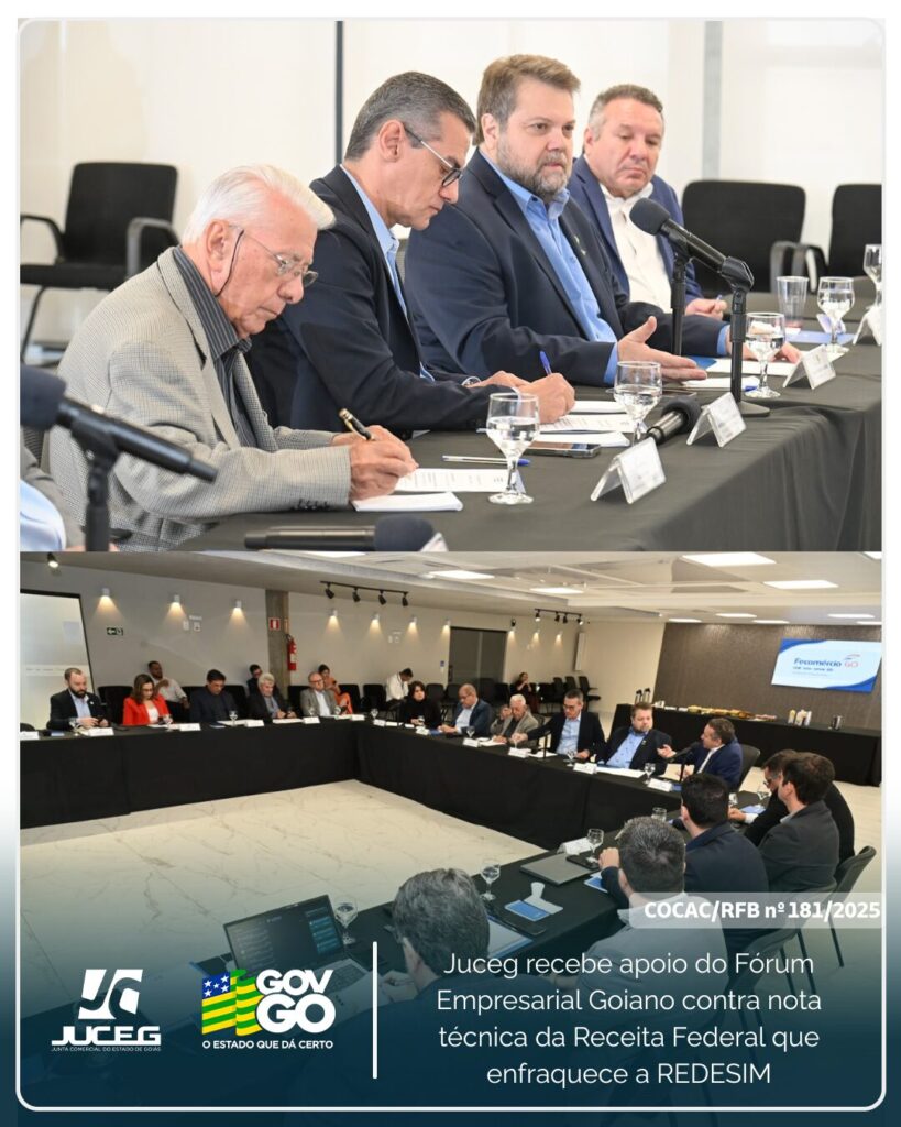 O Fórum das Entidades Empresariais (FEE) declarou apoio à Junta Comercial de Goiás frente a nota técnica, da Receita Federal, que pretende atrasar o tempo de abertura das empresas em todo o país. Em reunião realizada nesta segunda-feira (14), na Fecomércio-GO, o presidente da Juceg, Euclides Barbo Siqueira apresentou aos representantes das entidades o retrocesso que significa a nota COCAC/RFB nº 181/2025 e os possíveis impactos na economia.