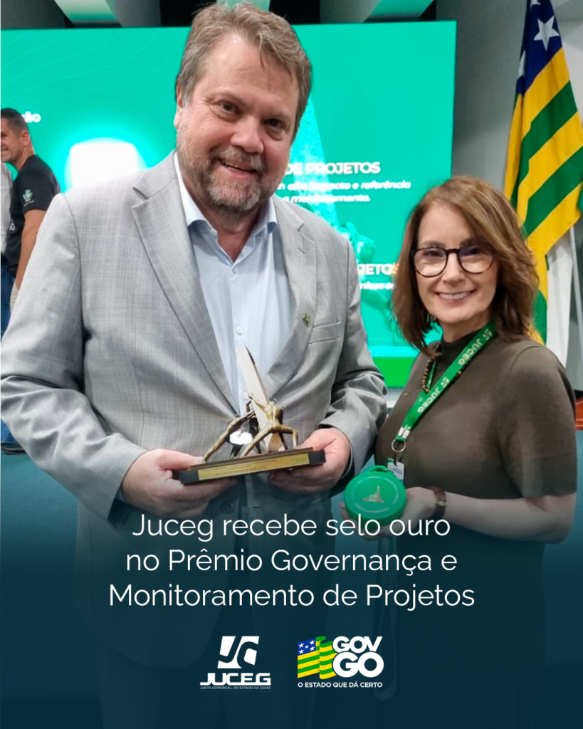 A Junta Comercial do Estado de Goiás (Juceg) conquistou o selo ouro na categoria Monitoramento de Projetos na 2ª edição do Prêmio Governança e Monitoramento de Projetos: Excelência em Gestão Pública, promovido pelo Governo de Goiás. A premiação avalia órgãos estaduais em quatro frentes: Monitoramento de Projetos, Captação de Recursos, Escritório de Projetos e Prioridades Governamentais.