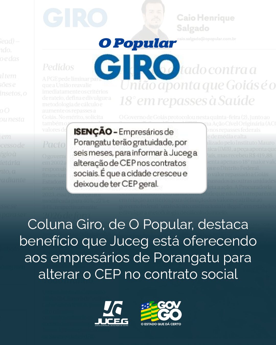Notícias Grandes empresas quase dobram investimentos em Goiás em setembro6 de outubro de 2025Disponível o Edital de cancelamento de processos/protocolos sem movimentação há mais de 30 dias, referente aos meses agosto e setembro de 20256 de outubro de 2025Empresários de Porangatu terão isenção de taxa para mudança de CEP em contrato social3 de outubro de 2025Coluna Giro, de O Popular, destaca benefício que Juceg está oferecendo aos empresários de Porangatu para alterar o CEP no contrato social.3 de outubro de 2025Juceg passa a oferecer autenticação de Livro Diário de MEI1 de outubro de 2025Juceg participa de Encontro de Corregedorias do Estado de Goiás1 de outubro de 2025Vice-presidente da Juceg prestigia homenagem da Alego aos contadores1 de outubro de 2025Prefeitura de Aragoiânia recebe computadores doados pela Juceg29 de setembro de 2025Representantes de Juntas Comerciais do Brasil recebem livro com história da Juceg24 de setembro de 2025Setembro Amarelo: Palestra na Juceg aborda prevenção a adoecimento mental23 de setembro de 2025‹12345678›»