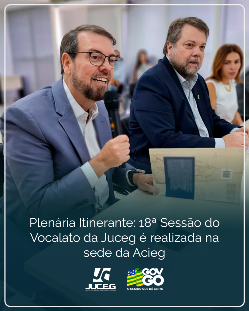 A 18ª Sessão Plenária do Vocalato da Juceg, realizada na manhã desta terça-feira (16), aconteceu na sede da Associação Comercial, Industrial e de Serviços do Estado de Goiás (Acieg), em Goiânia. A reunião, em local distinto ao prédio sede da Junta Comercial, faz parte do projeto Plenária Itinerante, que vai percorrer os espaços das entidades que compõem o colégio de vogais.