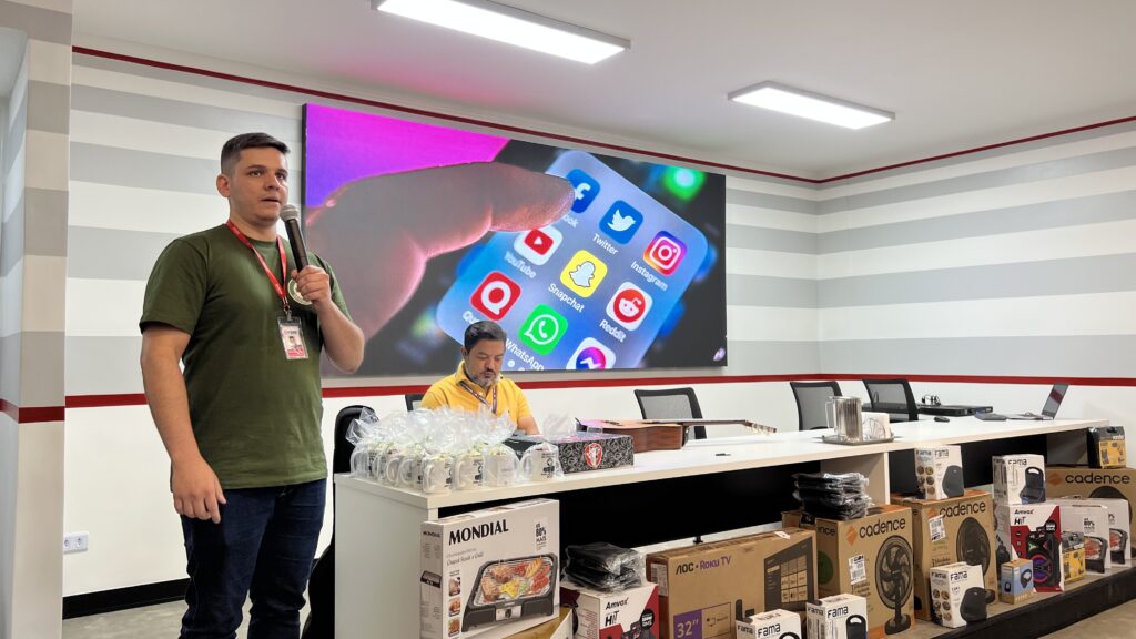 O encerramento da semana aconteceu no auditório Padre Pelágio, com a palestra “Redes Sociais: Necessidade ou Excesso?”, conduzida pelo psicólogo e psicanalista Júlio Moura, especialista em comportamento humano. O tema instigou os participantes a refletirem sobre o uso consciente das redes e o impacto das mídias digitais na saúde mental.